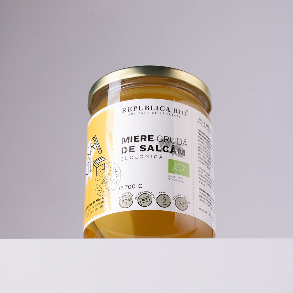 Mierea de Salcam ecologica Republica BIO este o miere pura, nepasteurizata, obtinuta din nectar si polen colectate de albinele care zboara liber pe campiile si dealurile nepoluate ale Transilvaniei. Produsa in Romania, aceasta miere este testata si certificata pentru a asigura calitatea si puritatea, conform standardelor stricte ale Uniunii Europene.