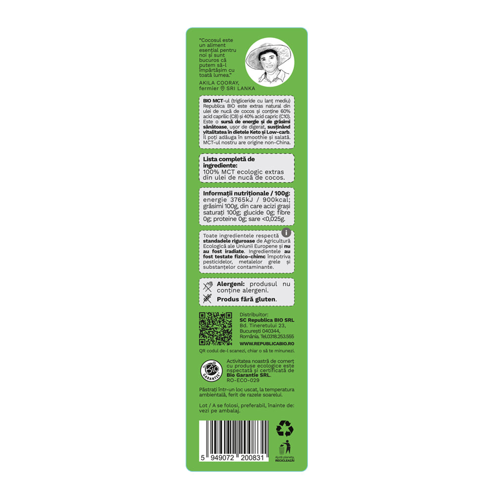 Bio MCT C8 & C10 extras natural din ulei de cocos, ecologic, fara gluten Republica BIO, 250ml