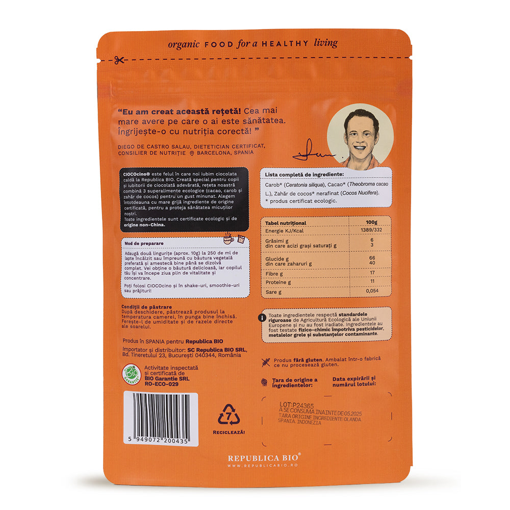 Ciococino de la Republica BIO este felul nostru de a iubi ciocolata calda. O combinatie delicioasa de superalimente ecologice, Ciococino a fost creat special pentru copii si iubitorii de ciocolata adevarata. Produsul este vegan, fara gluten, neiradiat si testat impotriva pesticidelor si contaminantilor, garantand calitatea si siguranta ingredientelor sale.