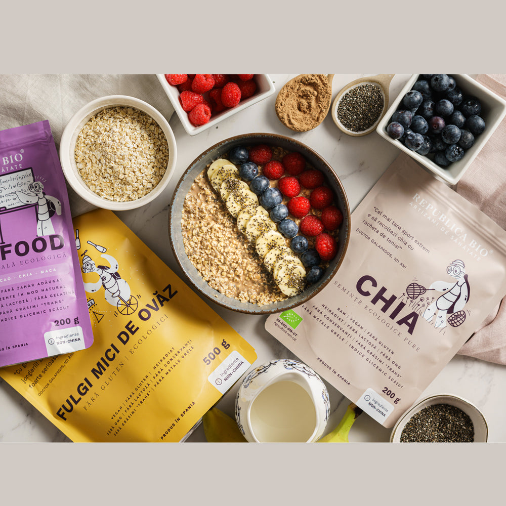 • Sustinerea digestiei: Lucuma si chia ajuta la imbunatatirea digestiei, oferind fibre si sustinerea unei bune functionari a sistemului digestiv.