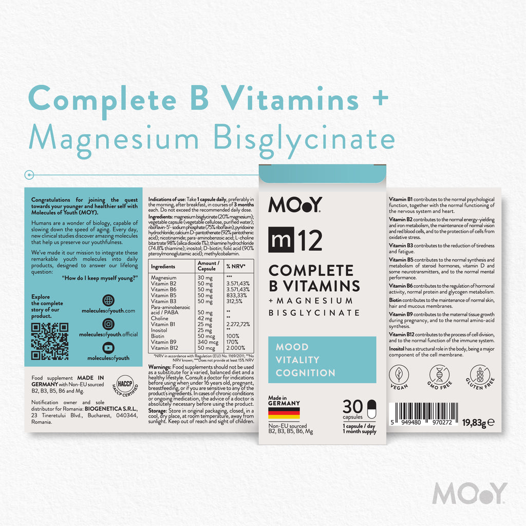 Formula avansata ce reuneste TOATE vitaminele esentiale din complexul B, alaturi de magneziu bisglicinat, pentru un efect sinergic puternic. Ofera suport complet pentru energie, functie cognitiva, sanatatea sistemului nervos si metabolism, ajutandu-te sa faci fata perioadelor solicitante fizic si mental. Indispensabil pentru cei care vor mai multa vitalitate, claritate mentala si rezistenta la stres.