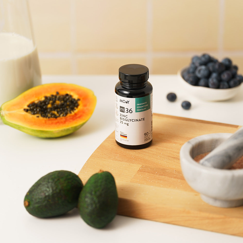 • Forma de zinc bisglicinat, ce ofera biodisponibilitate superioara, absorbtie optima si eficienta ridicata.