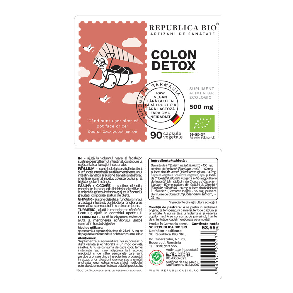 • 90 capsule a cate 500 mg Colon Detox, in flacon dublu sigilat.
