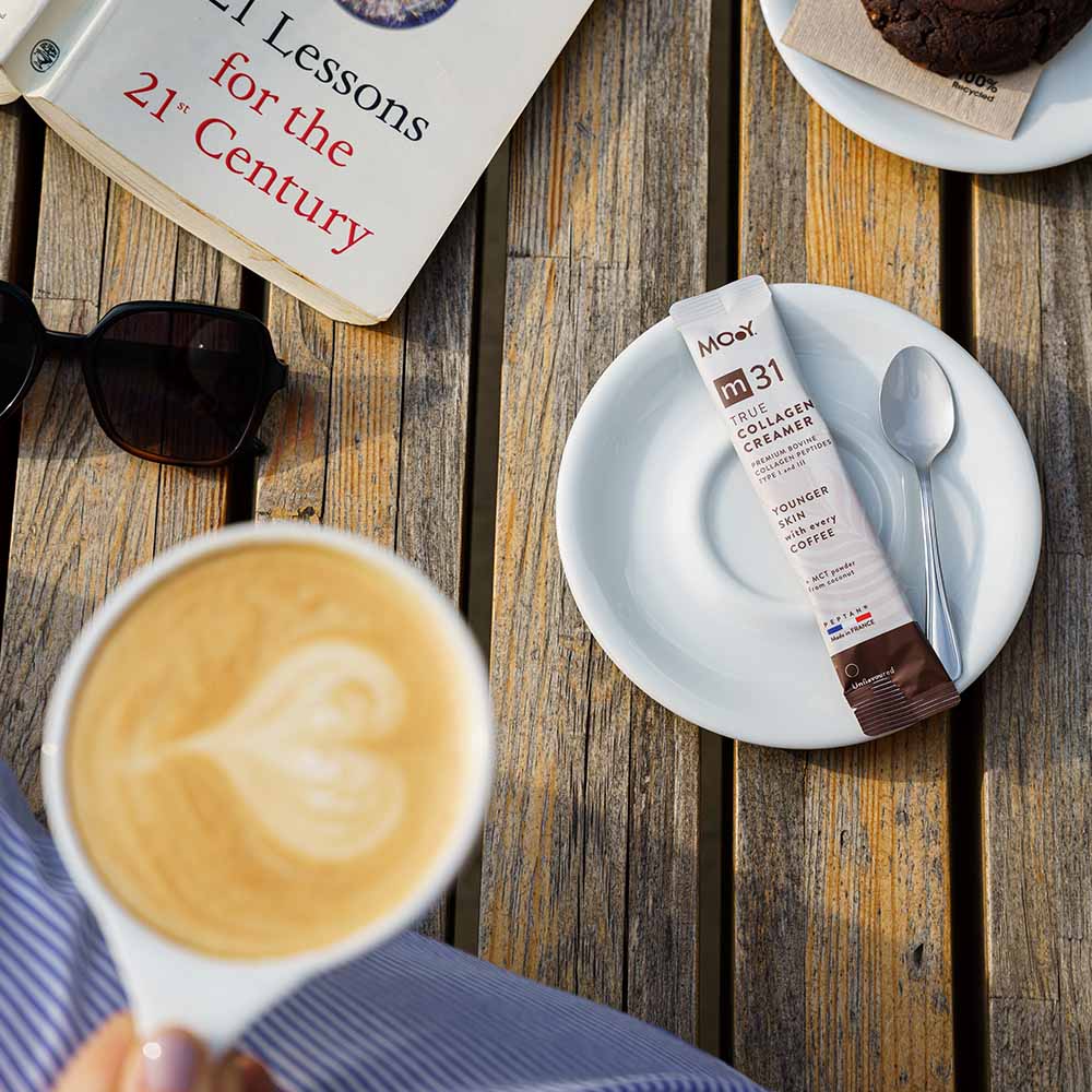 • Sprijina formarea unui obicei sanatos, asociind consumul de colagen cu rutina zilnica a cafelei de dimineata.